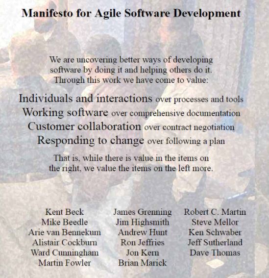 Kent Beck tries to unify all the experiences of the new movement in software development and invites several gurus of the moment to jointly create a common manifesto. Among them are the creators of Scrum, Crystal and other agile methodologies. At that moment Kent Beck suggests the new concept of Agile. Giving rise to the principles of the agile manifesto.