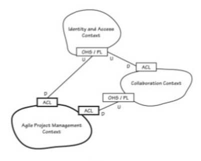 Adaptor can be replaced by new Repository implementations using HttpClient for access to the external repository via API. In the following diagram we see the Bounded Contexts and their integration points through OHS and PL using ACL to map and translate the domain model establishing compatibility for each type of entity: