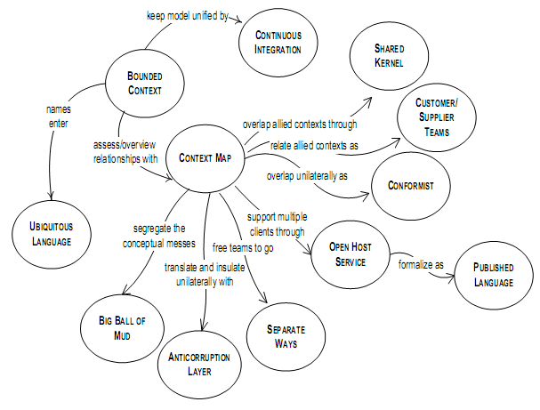 Evans, describes organizational and integration patterns that describe the types of relationship between Bonded Contexts